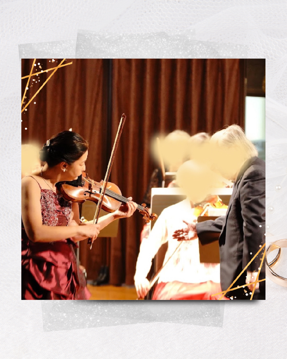 クラシカルパープルのドレスの色味が、バイオリンの木の温かみや深みのある音色と調和して本当にお似合いでした♩