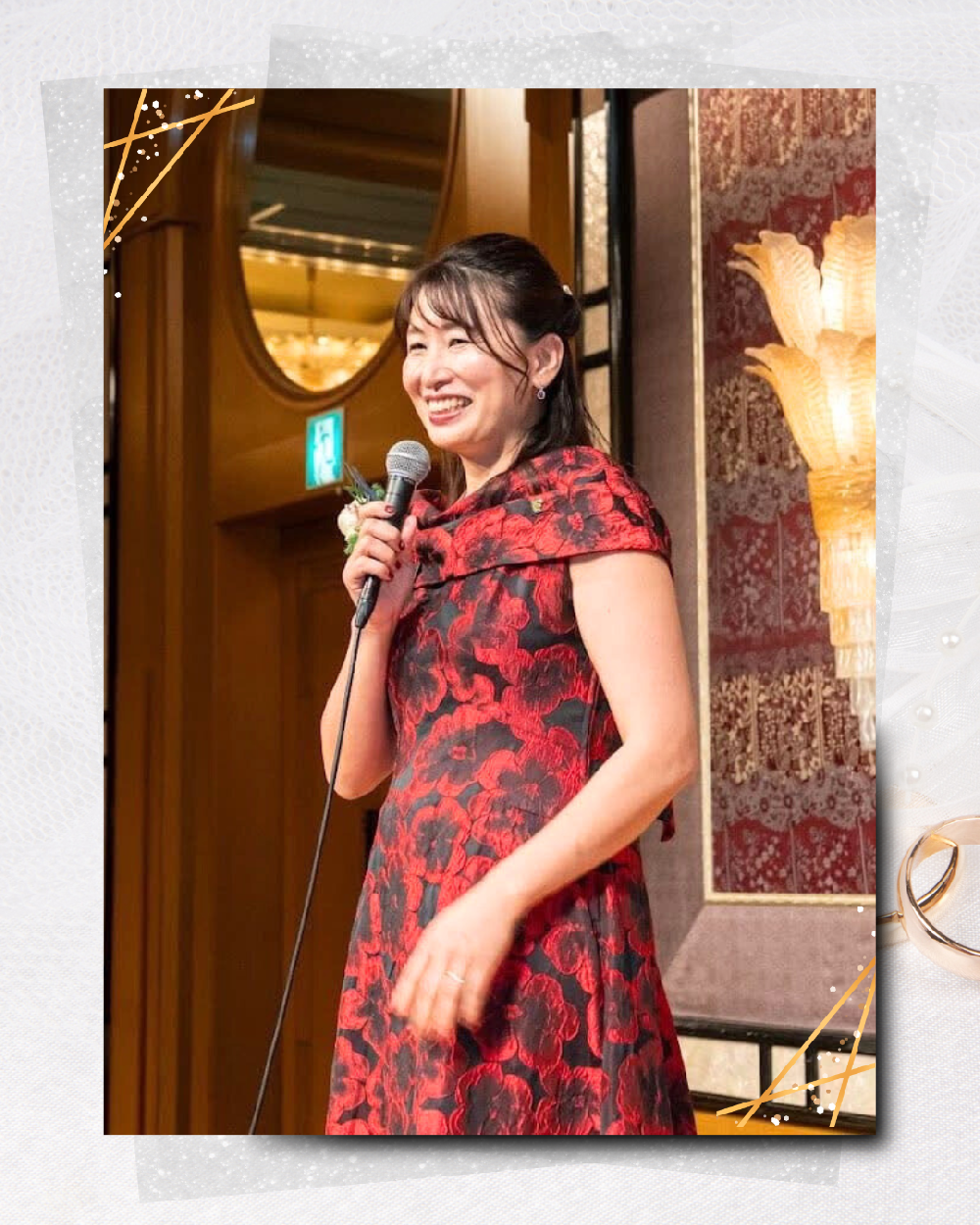 経営者パーティーでのご利用で、赤い演奏会用ロングドレスをレンタルしていただきました。