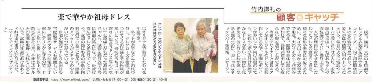 クレアローズは、日本のおばさま、おばあちゃんを幸せにする、を掲げてドレスをご提供しています。