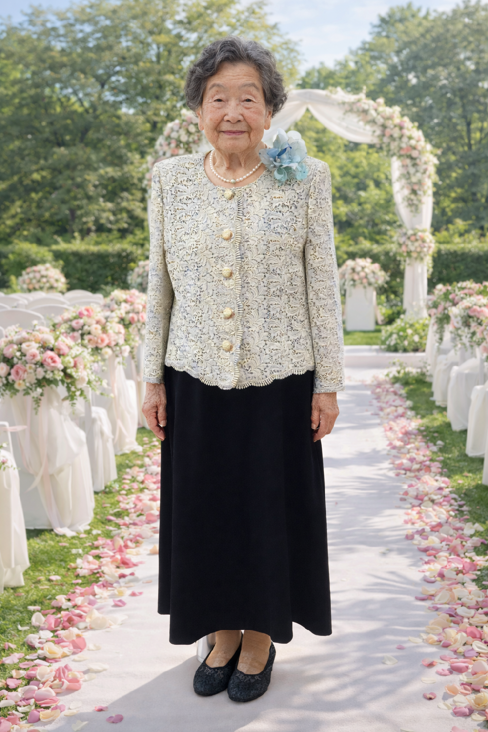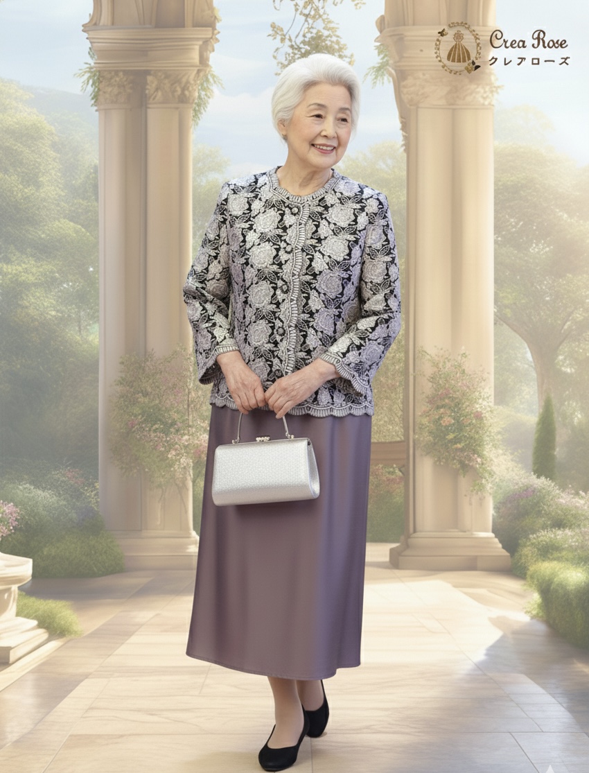 祖母様叔母さま向けフォーマルドレス【フォーマルネイビープリーツスカート+ユミクラシカジャケット】慶の日に寄り添う格調高い装い