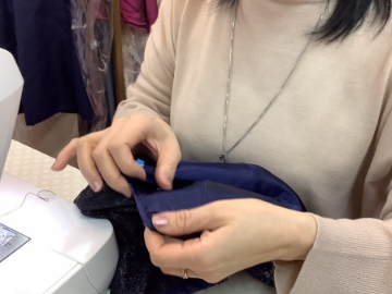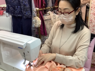 お客様のドレスを本縫いで仕上げ、完成させます。